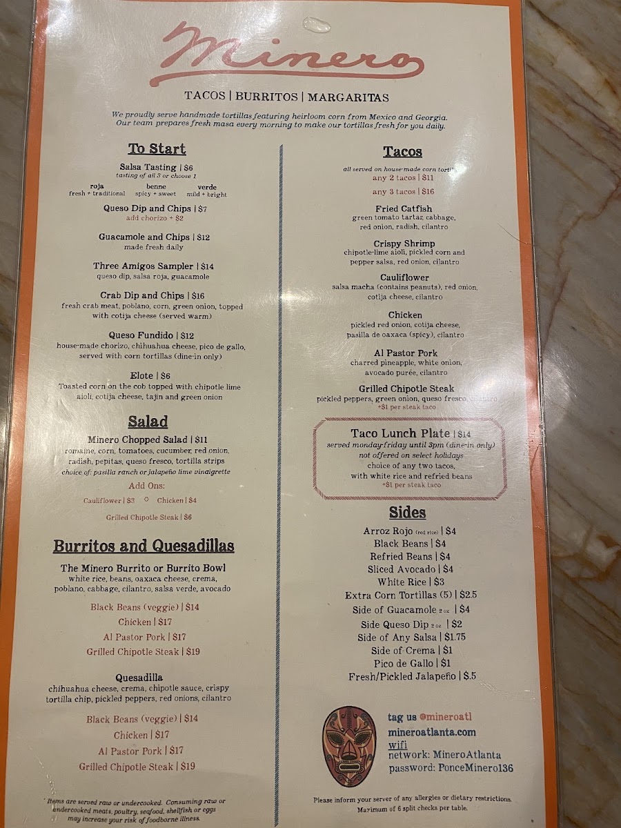 Welcome to Minero, a vibrant culinary gem nestled in the heart of Atlanta. Located at 675 Ponce De Leon Ave NE, this establishment offers a delicious journey through Mexican cuisine that is both innovative and rooted in tradition.
